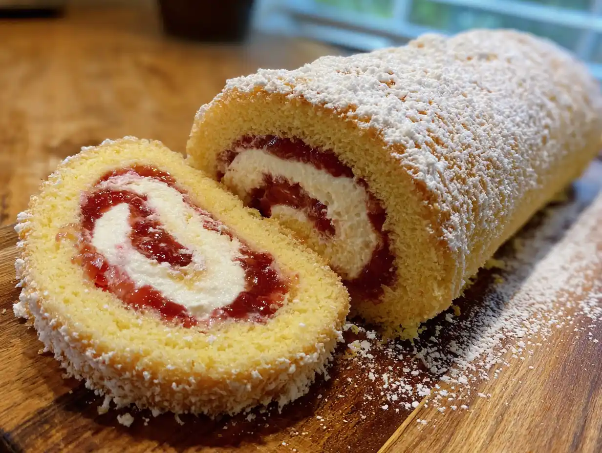 rulltårta med jordgubbssylt
